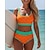Damen Rash Guard Tauchanzug Badeanzug Badeanzug-Set Streifen Abstrakt Geometrie Reißverschluss UPF50+ Schnelltrocknend Leicht Langarm T-Shirt zum Schwimmen Surfen Strand Wassersport Sommer