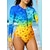 Damen Standard Anti UV Shirt Badeanzug Badeanzug-Set Geometrisch Karomuster Tropisch Reißverschluss UPF50+ UV Schutz Schnelltrocknend Langarm T-Shirt zum Schwimmen Surfen Strand Wassersport Sommer