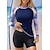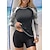 Damen Rash Guard Badeanzug Anti UV Shirt Tankini-Badeanzüge Geometrisch Farbblockierung 2 teilig Herausnehmbare Polsterung Boyleg UV-Sonnenschutz UPF50+ UV Schutz Langarm Bademode Schutz gegen