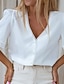 Damen Sommerhemd Freizeithemd Bluse Chiffon Tops Spitze Einfarbig Einfach Elegant Täglich Stilvoll Kurzarm V Ausschnitt Normale Oberteile Täglich Ferien Ausgehen Weiß Sommer Frühling