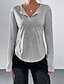 Damen T Shirt Knöpfe Einfarbig Elegant Stilvoll Lässig Langarm Henley Normale Oberteile Täglich Ausgehen Grau Frühling Herbst