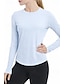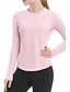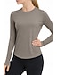 Damen Sport-T-Shirt Einfarbig Stilvoll Lässig Langarm Rundhalsausschnitt Normale Oberteile Fitnessstudio Sport Wochenende Schwarz Elfenbein Rosa Braungrau Leicht Blau Sommer Frühling Herbst