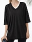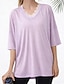 Damen Übergroße Waffel T-Shirt T-Shirt Gerollte Manschette Einfarbig Elegant Mode Lässig Kurzarm Fledermaus Ärmel V Ausschnitt Lange Oberteile Täglich Ausgehen Urlaubskleidung Hellgrün Purpur Orange