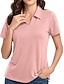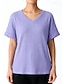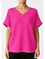 Damen T Shirt T-Shirt Einfarbig Elegant Mode Klassisch Kurzarm V Ausschnitt Hemdkragen Normale Oberteile Täglich Ausgehen Formelle Kleidung Rosa Purpur Grün Sommer Frühling