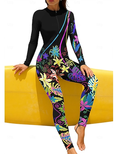 Damen Regulär Anti UV Shirt Ganzkörper-Rashguard Einteiliger Surfanzug Blumenmuster Tropisch Reißverschluss mit integriertem BH Frontreißverschluss UV-Sonnenschutz vollständige Bedeckung UPF50+