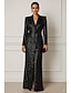 schwarzer Smoking Blazer Kleid Etuikleid/Säule formal Pailletten elegant Langarm bodenlang Revers zweireihig