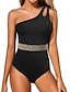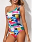 Damen Einteiliger Badeanzug Slimming Ein Schulter Farbblock Monokini Bauchkontrolle Hohe Taille Schlank Rücklos Urlaub Strandbekleidung Einfarbige Grafik Asymmetrischer Ausschnitt Ärmelloses Badeanzug