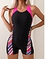 Damen Einteiler Badeanzug Schlank einteiliger Badeanzug mit Shorts Farbenblock Monokini Bauchkontrolle Hoher Bund Schlank Rückenkonzipiert Urlaub Strandbekleidung Farbenblock Scoop-Ausschnitt