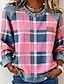 Damen Bluse Patchwork Karomuster Farbblock Elegant Vintage Stilvoll Langarm Rundhalsausschnitt Normale Oberteile Täglich Ferien Ausgehen Blau Schwarz Rosa Grün Rot / Blau Frühling Herbst Winter