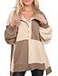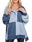 Damen Pullover Sweatshirts Patchwork Knöpfe Farbblock Mode Klassisch Modern Langarm Rundhalsausschnitt Normale Oberteile Straße Alltagskleidung Blau Schwarz Rosa Himmelblau Grün Frühling Herbst