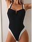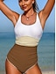 Damen Badeanzug Einteiler Monokini Bademode Bauchkontrolle Hohe Taille Schlank Rückenfrei Urlaub Strandbekleidung Farbblock Rundhalsausschnitt Ärmellos Badeanzüge