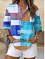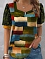Damen Bluse Druck Karomuster Farbblock Vintage Stilvoll Lässig Kurzarm V Ausschnitt Normale Oberteile Täglich Ferien Ausgehen Blau Orange Sommer Frühling