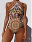 Damen Badeanzug Einteiler Slips Bademode Urlaub Mode Grafik Geometrisch Rundhals Ärmellos Badeanzüge