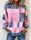 Damen T Shirt Druck Grafik Geometrisch Farbblock Vintage Mode Stilvoll Langarm Rundhalsausschnitt Rundhals Normale Oberteile Täglich Wochenende Hellgrau Frühling Herbst Winter