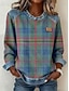 Damen T Shirt Druck Grafik Geometrisch Farbblock Vintage Stilvoll Klassisch Langarm Rundhalsausschnitt Rundhals Normale Oberteile Täglich Leicht Blau Frühling Herbst Winter