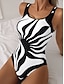 Damen Badeanzug Einteiler Monokini Slips Bademode Bauchkontrolle Hohe Taille Schlank Rückenfrei Urlaub Strandbekleidung Grafik Tiermotiv Rundhals Ärmellos Badeanzüge