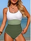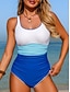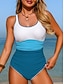 Damen Tankini 2-teiliges Badeanzug Farbblock Hohe Taille Rüsche Geschichtet Rückenfrei Urlaub Strandmode Ombre Grafik U-Ausschnitt Ärmellos Badeanzüge