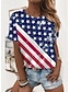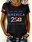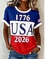 Unabhängigkeitstag Amerikanisches Jubiläum Patriotische Damen T-Shirt Druck Grafik Flagge Farbblock Stylisch Klassisch Lässig Kurzarm Crewneck Rundhalsausschnitt Reguläre Oberteile Alltag Blau