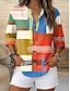 Damen Tunika T Shirt Druck Leopard Farbblock Buchstabe Vintage Stilvoll Lässig Langarm V Ausschnitt Normale Oberteile Täglich Sport Wochenende Blau Rosa Braun Grün Herbst