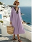 Damen Midikleid Strandkleid Freizeitkleid Schwingkleid Kleid aus Leinenimitat Elegant Mode Modern Outdoor Urlaub Ausgehen Lässiger Schnitt Farbblock Langarm V Ausschnitt Blau Purpur Sommer Frühling