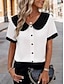 Damen Hemd Bluse Patchwork Knöpfe Farbblock Stilvoll Klassisch Modern Kurzarm Hemdkragen Normale Oberteile Täglich Ferien Ausgehen Schwarz Sommer Frühling