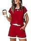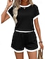 Damen Shorts-Sets Kurzarm Rundhalsausschnitt Farbblock Patchwork Elegant Mode Streetwear Täglich Outdoor Urlaub Schwarz Gelb Rote Sommer Lässiger Schnitt