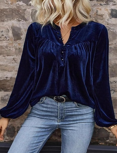 Damen Samt Elegant Bluse Knöpfe Einfarbig Einfach Elegant Stilvoll Lässig Langarm V Ausschnitt Normale Oberteile Täglich Ferien Ausgehen Blau Braun Frühling Herbst