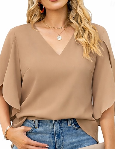Damen Sommerhemd Freizeithemd Bluse Einfarbig Elegant Stilvoll Basic Halbarm V Ausschnitt Normale Oberteile Täglich Blau Schwarz Rote Grün Beige Sommer Frühling Herbst