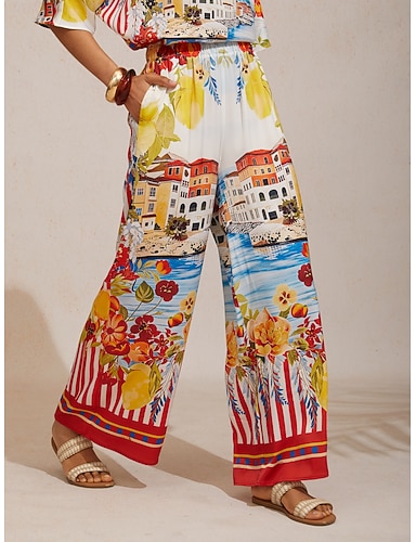 Damen Weite Hosenbeine Stoffhosen Schwingend Urlaub Vintage Ethno-Stil Volle Länge Mittlere Taille Blumen Grafik Mikroelastisch Heim Outdoor Urlaub Mehrfarbig Sommer Frühling Herbst Lässiger Schnitt