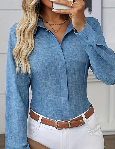 Damen Bluse Knöpfe Einfarbig Mode Täglich Stilvoll Langarm Hemdkragen Normale Oberteile Täglich Blau Weiß Rosa Sommer Frühling Herbst