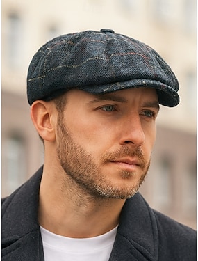 Herren-Zeitungsjungenmütze im Vintage-Stil mit Fischgrätenmuster – klassischer flacher Tweed-Efeuhut, Baskenmütze im Retro-Gatsby-Stil für Freizeitkleidung und Partys im Freien