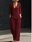 Damen Baumwoll-Leinen-Sets Langarm Glockenärmel V Ausschnitt Einfarbig Bohemien Urlaub Mode Lässig Täglich Blau Dunkelgrau Braun Frühling & Sommer