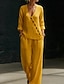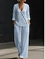 Damen Hosen-Sets Kunstbaumwollleinen Kurzarm V Ausschnitt Einfarbig Mode Streetwear Lässig Täglich Outdoor Blau Schwarz Weiß Frühling & Sommer Lässiger Schnitt