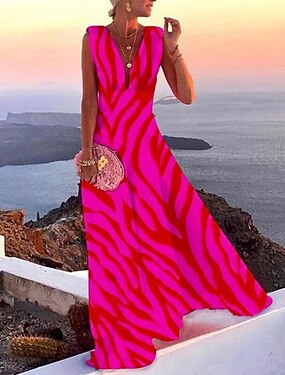 Damen Maxikleid Abendkleid Sommerkleid Elegant Formell Hochzeit Party Normale Passform Blumen Ärmellos V Ausschnitt Rosa Rote Blau Fuchsie Sommer Frühling
