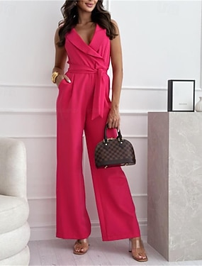 Damen Normal Overall Aktiv Einfarbig Ärmellos Weites Bein V Ausschnitt Schleife Rückenfrei Täglich Urlaub Normale Passform Fuchsie Sommer