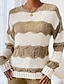 Damen Pullover Streetwear Lässig Gestreift Zopfmuster Rundhalsausschnitt Patchwork Gestrickt Langarm Normale Oberteile Stricken Ferien Ausgehen Wochenende Aprikose Herbst Winter