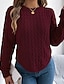 Damen Pullover Streetwear Lässig Einfarbig Zopfmuster Rundhalsausschnitt Gestrickt Langarm Normale Oberteile Stricken Täglich Ferien Ausgehen Weinrot Weiß Herbst Winter