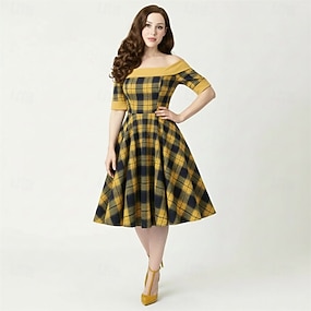 Rockabilly Midlänge A-Linien-Kleid Kurze Ärmel Tailliert und ausgestellt Kostüm Damen Karneval Valentinstag Lässig Heimkehr Retro-Mottoparty Erwachsene Kleid Frühling