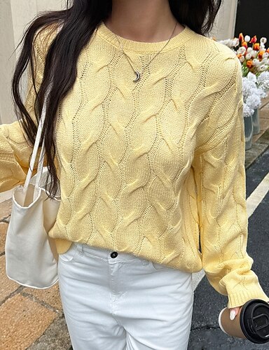 Damen Pullover Streetwear Lässig Einfarbig Rundhalsausschnitt Gestrickt Langarm Normale Oberteile Stricken Täglich Ausgehen Wochenende Schwarz Gelb Herbst Winter