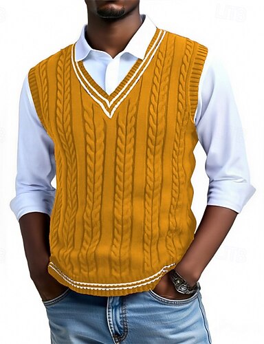 Herren Pullunder Kleid Pullover Pullover Weste Strickpullover Gerippt Zopfmuster Stricken Normale Oberteile Gestrickt Farbblock V Ausschnitt Mode Lässig Urlaub Alltagskleidung Bekleidung Herbst Winter