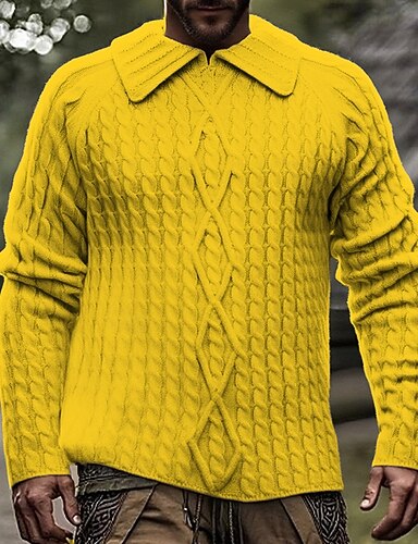 Herren Pullover Strickpullover Zopfmuster Stricken Normale Oberteile Gestrickt Einfach Rundhalsausschnitt Mode Basic Urlaub Alltagskleidung Bekleidung Herbst Winter Schwarz Gelb S M L