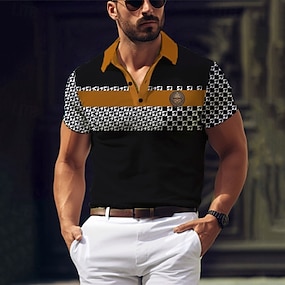 Herren Grafik Poloshirts mit Reißverschluss Kurzarm Polo-Shirts Hemden mit Kragen Lässig Athleisure Alltagskleidung 3D-Druck Sommer Gelb Rote Grau