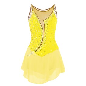 Eiskunstlaufkleid Damen Mädchen Eislaufen Kleider Gelb Rückenfrei Spandex Hochelastisch Ausbildung Wettbewerb Eiskunstlaufkleidung Handgemacht Kristalle Ärmellos Eislaufen Eiskundstlauf