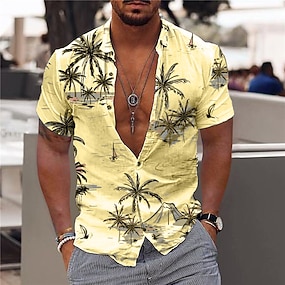 Herren Kokospalme Tropische Pflanzen Hemd Sommer Hawaiihemd Alohahemd Kurze Ärmel Mode Designer Lässig Lässig Outdoor Straße Sommer Frühling Umlegekragen Druck Blau Gelb Rosa Wein Marineblau