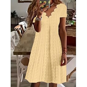 Damen Knielanges Kleid Weißes Spitzenkleid Kleid mit Lochstickerei Elegant Mode Modern Outdoor Strand Urlaub Lässiger Schnitt Einfach Halbarm Rundhalsausschnitt Blau Weiß Gelb Purpur Sommer Frühling