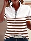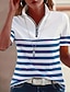 Damen T Shirt Reißverschluss Grafik Geometrisch Gestreift Stilvoll Klassisch Lässig Kurzarm Rundhalsausschnitt Normale Oberteile Täglich Sport Ausgehen Blau Rosa Purpur Grau Sommer Frühling