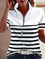 Gestreiftes Damen-Poloshirt mit Viertelreißverschluss, kurzen Ärmeln und hohem Kragen, lässiges Oberteil für Sommer, Frühling, Alltag und Wochenende, verschiedene Farben