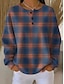 Damen Hemd Bluse Patchwork Knöpfe Druck Grafik Geometrisch Karomuster Vintage Tropisch Täglich Langarm Hemdkragen Normale Oberteile Täglich Leicht Blau Sommer Frühling