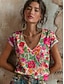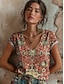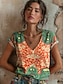Damen T Shirt Druck Blumen Grafik Geometrisch Vintage Stilvoll Klassisch Kurzarm V Ausschnitt Normale Oberteile Täglich Wein Rote Orange Sommer Frühling