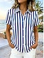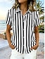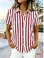 Damen Hemd Grafik Geometrisch Gestreift Vintage Tropisch Stilvoll Kurzarm Hemdkragen Normale Oberteile Täglich Blau Schwarz Rote Grau Sommer Frühling
